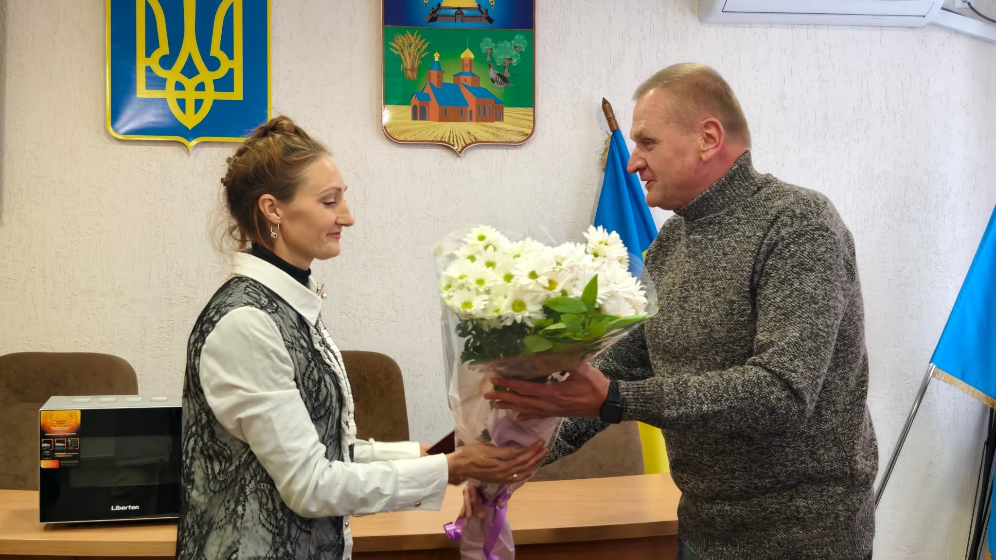 В Олексіївській громаді Харківщини відбулася урочиста церемонія вручення нагороди Віталіні Рюжановій. На заході її тепло привітав Олексіївський сільський голова Анатолій Страхов та всі працівники сільської ради та її виконавчого комітету.